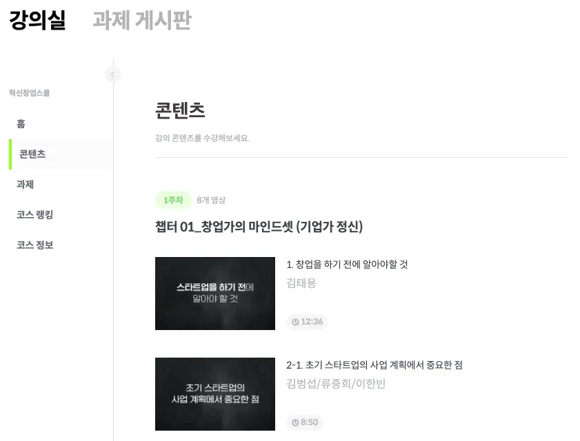 제공되는 영상을 끝까지 시청하게 되면 [시청함] 마크가 붙습니다! 매주 제공되는 영상을 모두 시청하면 해당 주차의 영상 시청 미션 완료됩니다 :)