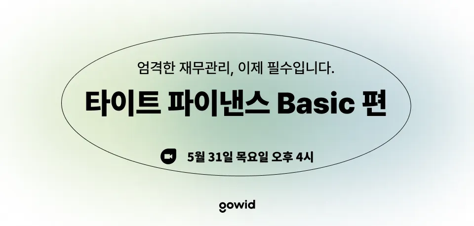 그 출발로 [고위드 타이트 파이낸스 - 베이직]을 준비하였습니다. 이 웨비나를 통해 엄격한 재무관리의 기본이 되는 현금 보는 법, 타이트 파이낸스의 기초 셋팅이 되는 법인 카드 사용에 대한 가이드를 공유하겠습니다.
