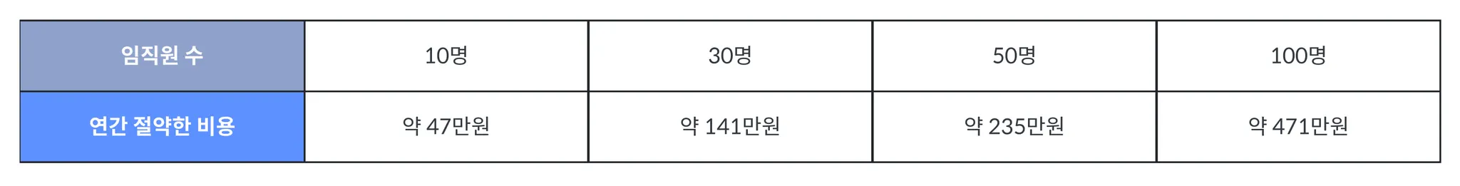 (고위드 할인 혜택 적용) 임직원 수로 알아보는 절약 가능한 비용